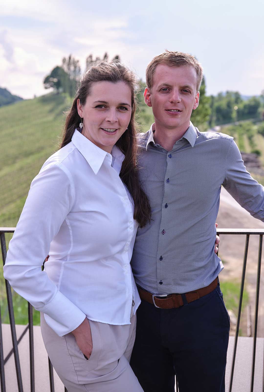 Seine Frau Bernadette ist vielseitig am Betrieb eingesetzt, einerseits die freundliche Stimme am Telefon, andererseits begleitet und führt sie durch Weinverkostungen und Kellerführungen. Einen großen Teil ihrer Zeit widmet sie nun auch den gemeinsamen Kindern. Die Freundlichkeit, die Fürsorge und das Know-how rund um den Weinverkauf bringt sie durch ihren Beruf und den 2020 absolvierten Getränke- und Weinsommelier mit und in den Betrieb ein.